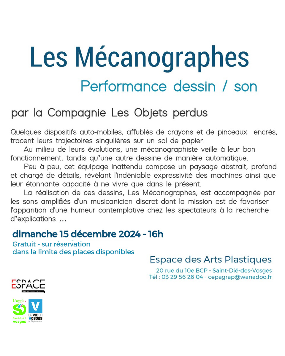 Deprecated: Use of "parent" in callables is deprecated in /project/VIDEV/web/app/plugins/simple-lightbox/includes/class.options.php on line 501 Performance dessin et son "Les Mécanographes" au CEPAGRAP - Saint Die Info