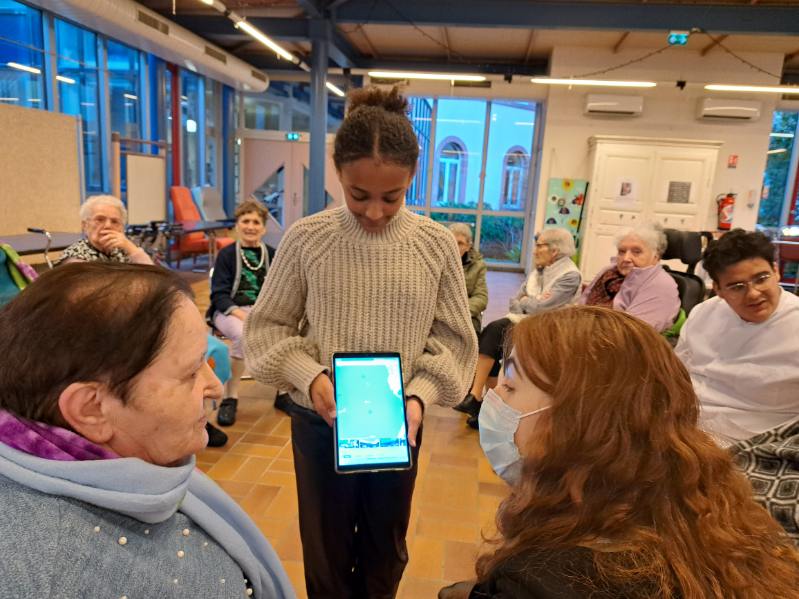Pour mieux visualiser les bonnes réponses, les enfants passaient auprès des séniors pour leur montrer la réponse concrète sur une tablette numérique. Au final, les 2 équipes ont terminé ex-aequo, puis cet après-midi intergénérationnel s’est conclu par un goûter bien mérité.