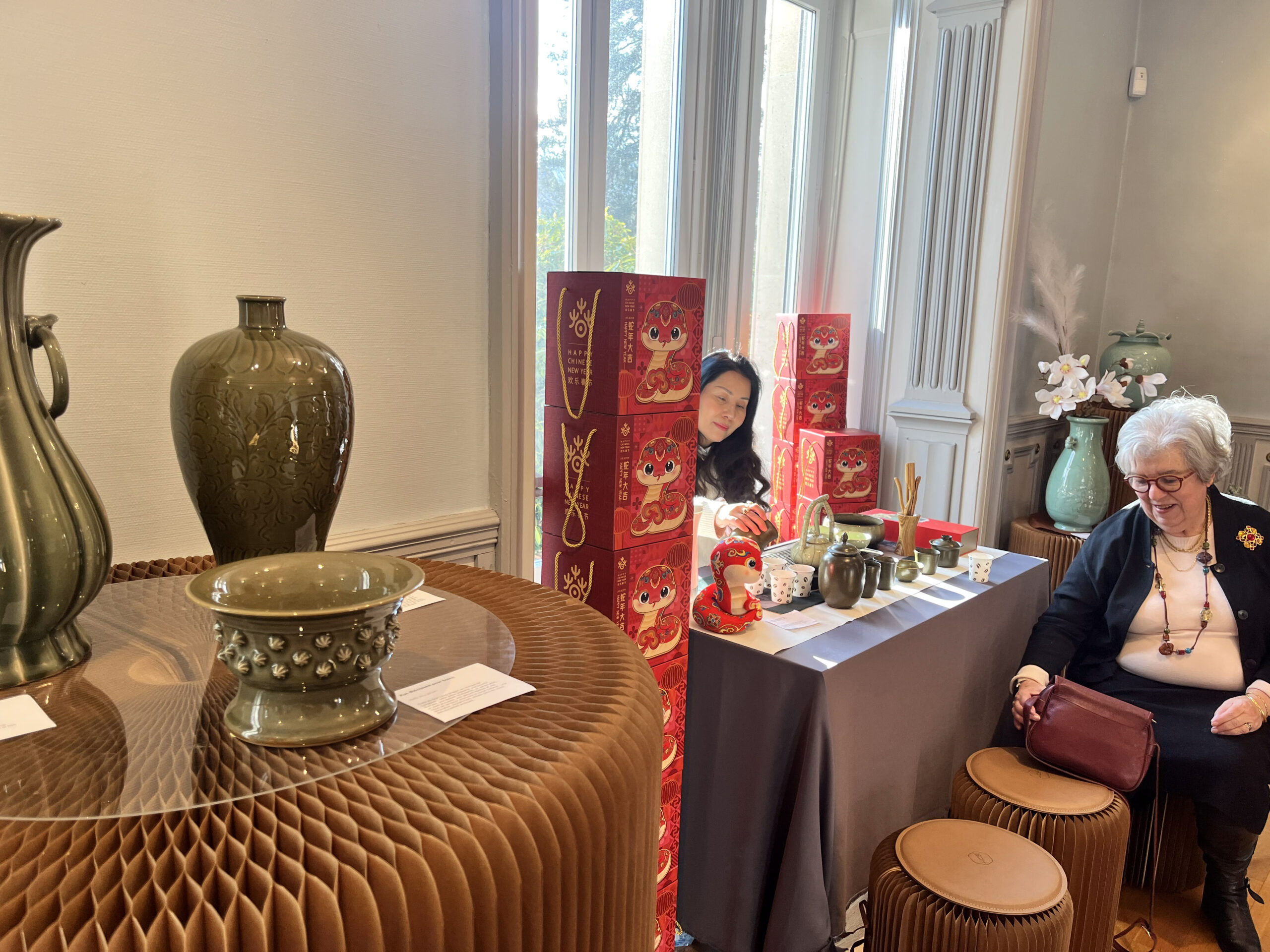 Outre la découverte des œuvres, l’événement offrait une dégustation de thé ainsi qu’une présentation musicale des instruments traditionnels chinois, le guqin et le pipa, invitant les visiteurs à une immersion sensorielle dans la culture chinoise.