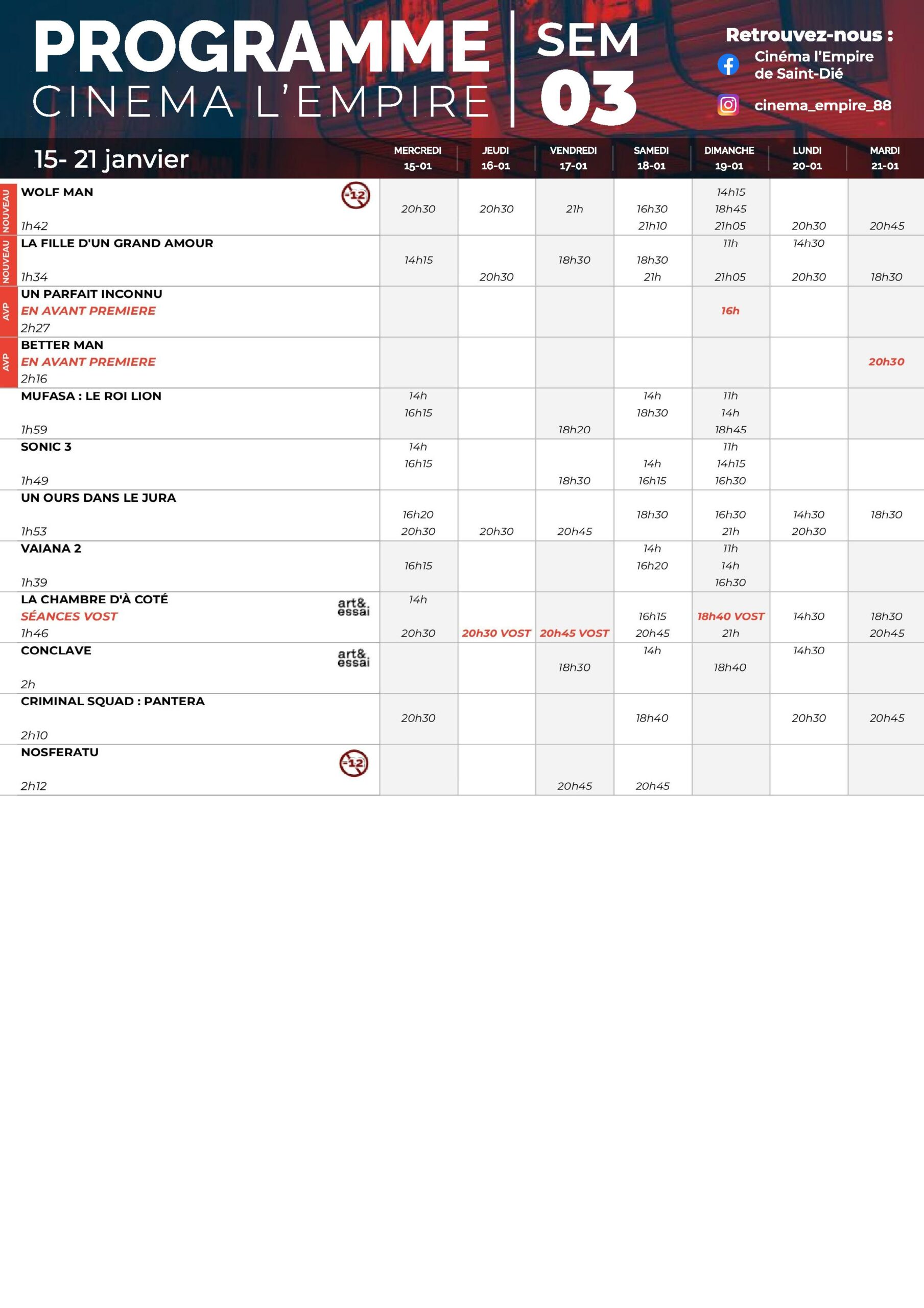 Deprecated: Use of "parent" in callables is deprecated in /project/VIDEV/web/app/plugins/simple-lightbox/includes/class.options.php on line 501 Au cinéma l'Empire du 15 au 21 janvier - Saint Die Info