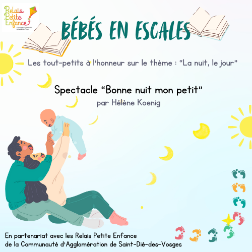 Du mardi 4 au samedi 8 février, les enfants de 0 à 3 ans seront à l’honneur autour du thème « La nuit, le jour ». S’inscrivant dans le cadre du Contrat Territorial de Lecture, « Bébés en Escales » se déclinera à La Boussole et à la médiathèque Jean-de-la-Fontaine de Saint-Dié-des-Vosges, également à Etival-Clairefontaine, Fraize et Senones.
