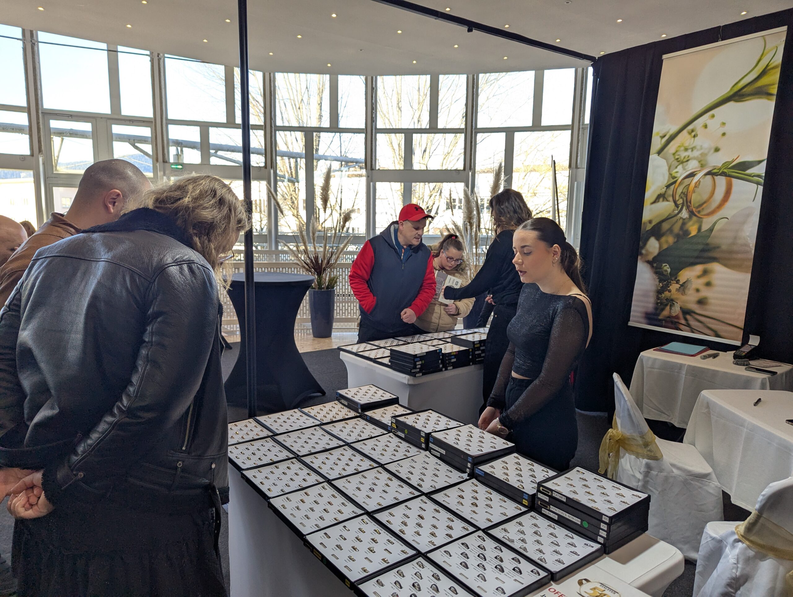 Jusqu’à 18h ce samedi et de 10h à 18h dimanche, ce sont près de 20 professionnels, essentiellement originaires de la Déodatie, qui sont présents sur le salon autour du thème « Le Romantisme de la Nature ». Créateur de robe de mariées, bijoutier, fleuriste, traiteur, photographe, spécialiste de l’événementiel… ces experts du mariage sont là pour renseigner les futurs mariés, qui pourront découvrir les tendances 2025 et même réserver directement des prestataires et prestations.