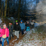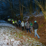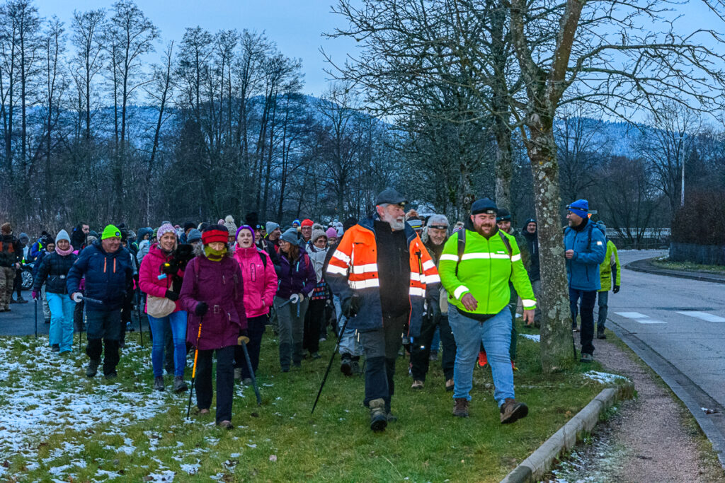 Au départ du parking du stade de rugby Pierre-Pebay, le rendez-vous était donné à la tombée de la nuit, à 16h30, pour une marche aux flambeaux de 9 kilomètres et 230m de dénivelé positif sur les sentiers forestiers.