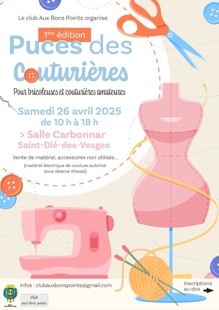 Le club Aux Bons Points de Saint-Dié-des-Vosges, qui organise chaque automne le Salon des Loisirs Créatifs, vient d’ajouter une corde à son arc avec une nouvelle manifestation : des puces des couturières, qui se tiendront le samedi 26 avril prochain à la salle Carbonnar.
