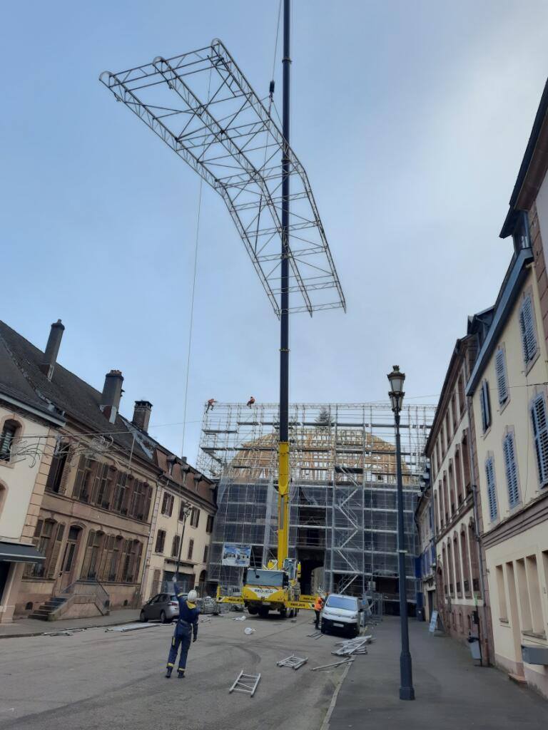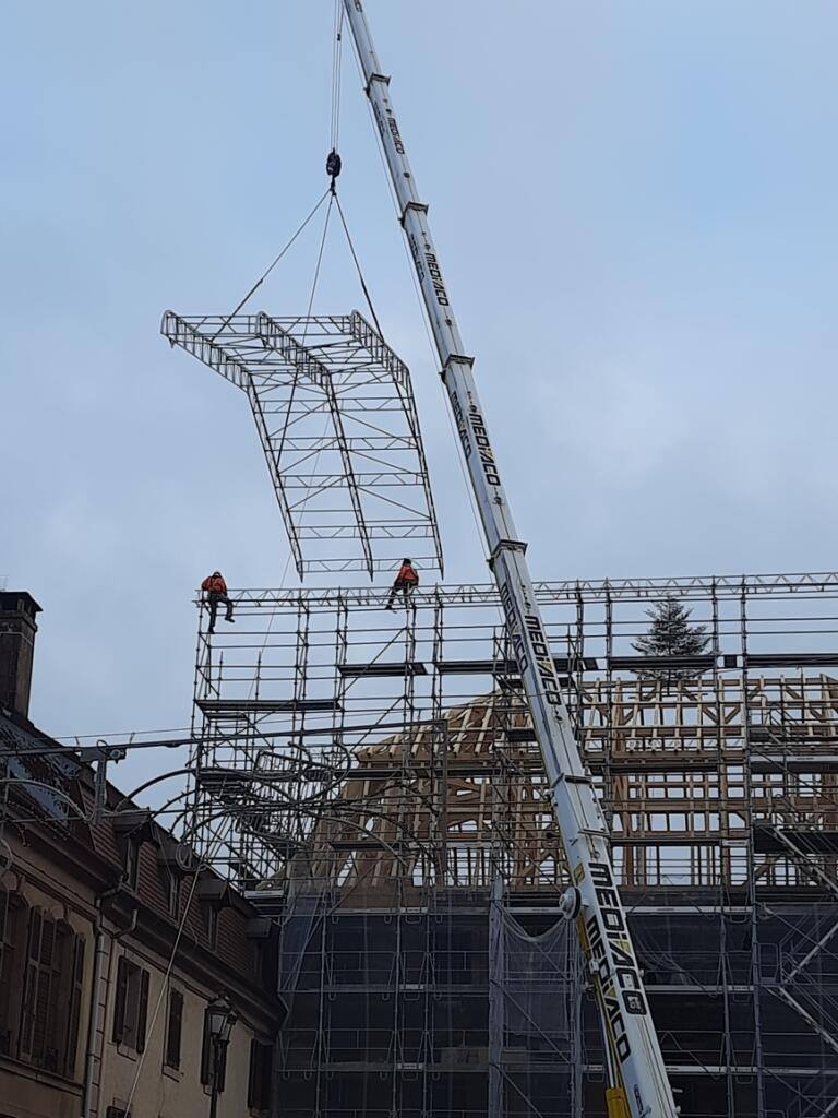 « Cet édifice va permettre la poursuite de la construction de la toiture à l’abri des intempéries » explique la Mairie de Senones à ce propos.