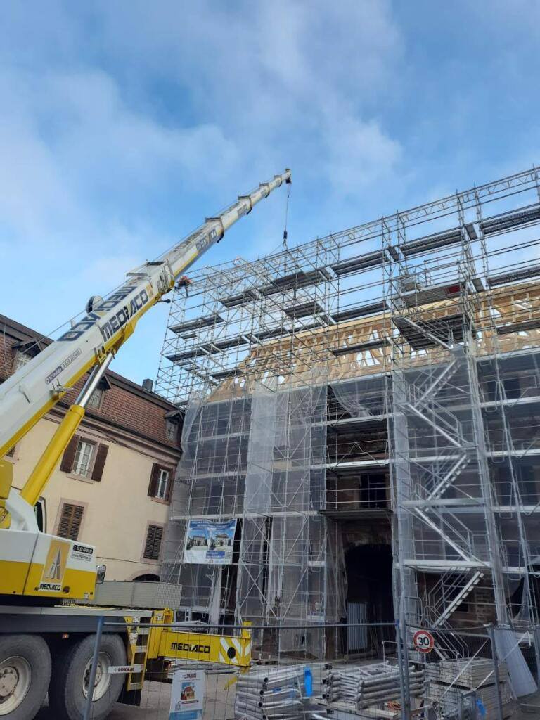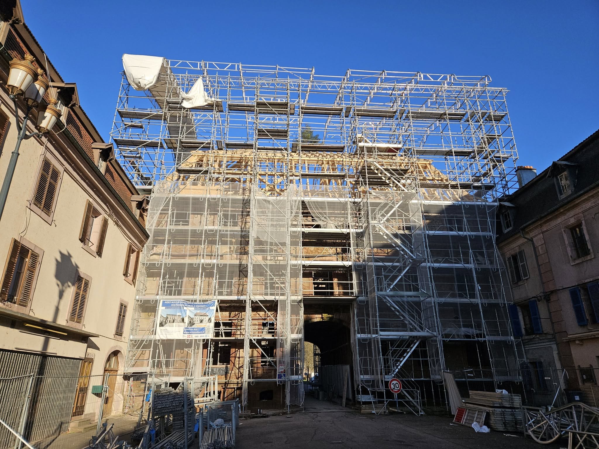 Nouvelle étape dans les travaux de rénovation du premier château des princes de Salm, au centre-ville de Senones, avec l’installation de l’imposant échafaudage parapluie ces derniers jours.