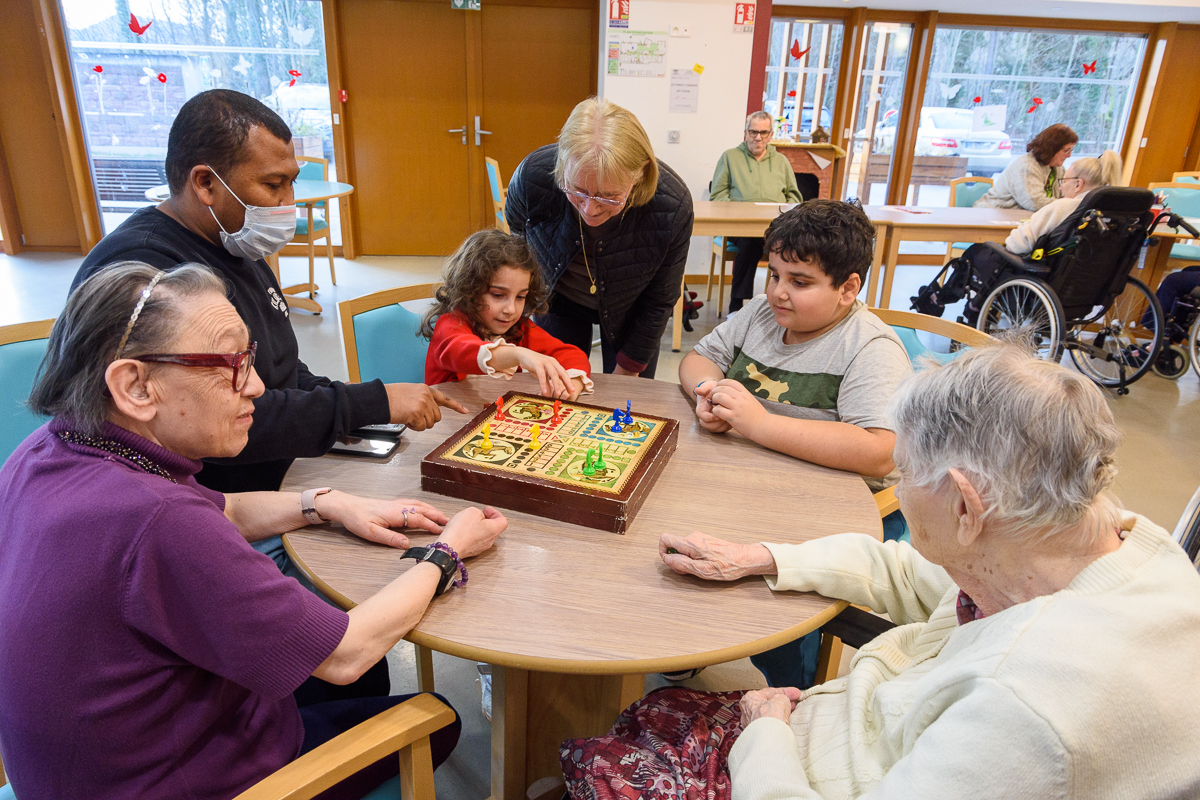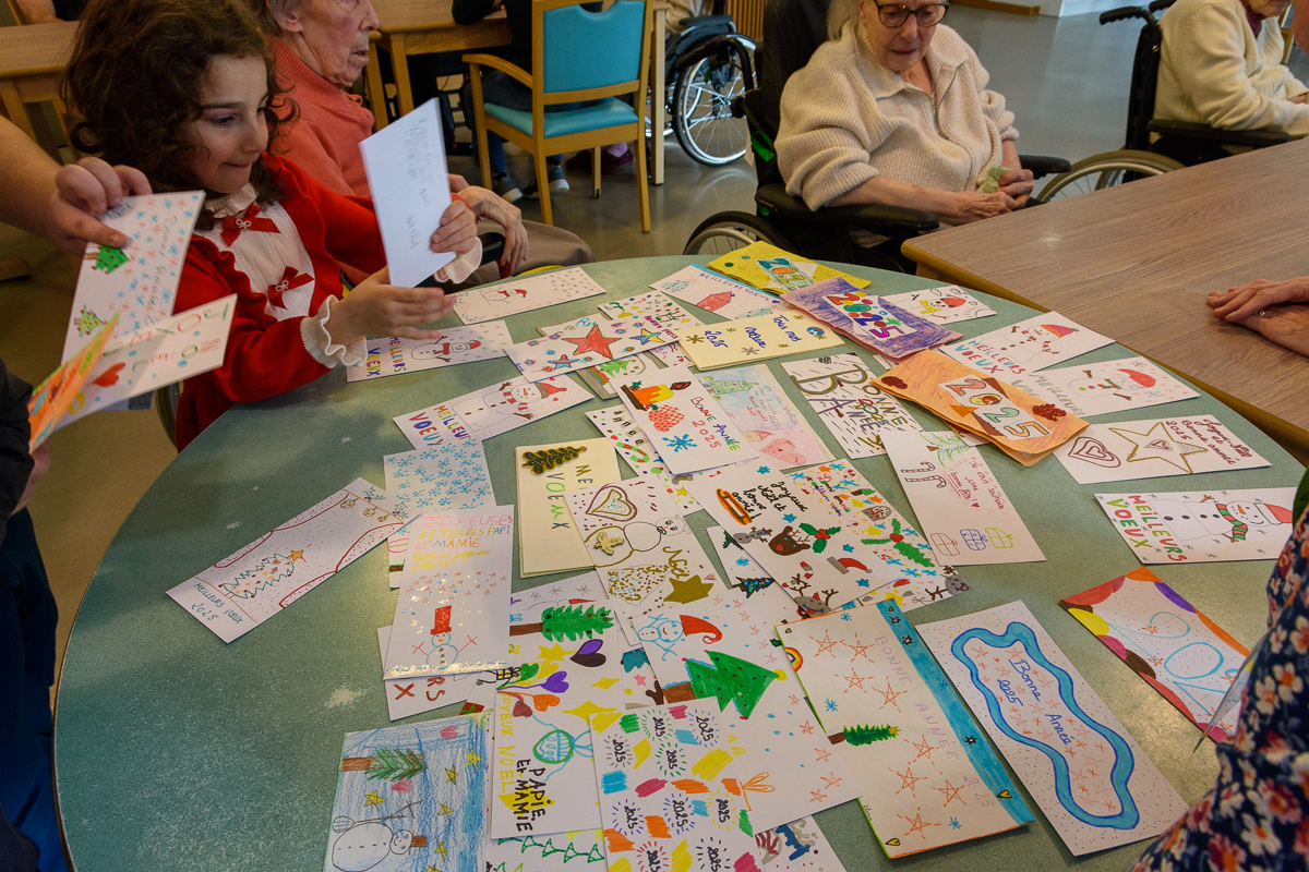 La distribution s’est poursuivie par un moment de partage : enfants et résidents ont échangé autour de jeux de société, avant de conclure ce moment intergénérationnel par un goûter convivial.