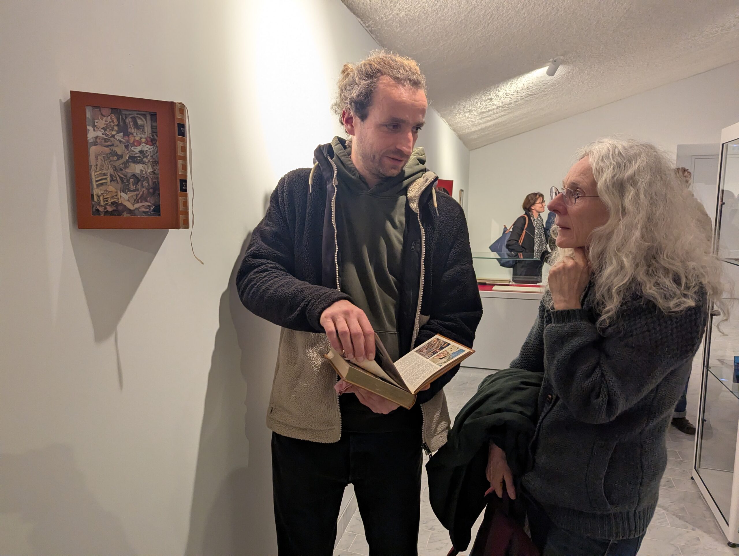 Lors du vernissage, qui s’est déroulé ce vendredi en fin de journée, Clémentine Eschenbrenner a raconté l’anecdote du « Lai d’Aristore », un poème du XIIIe siècle qui a servi à boucher les trous d’un orgue au XVIe siècle… pour être redécouvert par la suite et d’une grande valeur aujourd’hui. Ce qui soulève l’intéressante question de la valeur d’un ouvrage, qui peut largement évoluer d’une époque à l’autre. Car comme l’artiste déodatienne l’a déclaré – et prophétisé ? – l’une de ses œuvres papier pourrait servir de cale-meule dans 3 siècles, puis être considérée comme une œuvre inestimable encore 3 siècles plus tard.