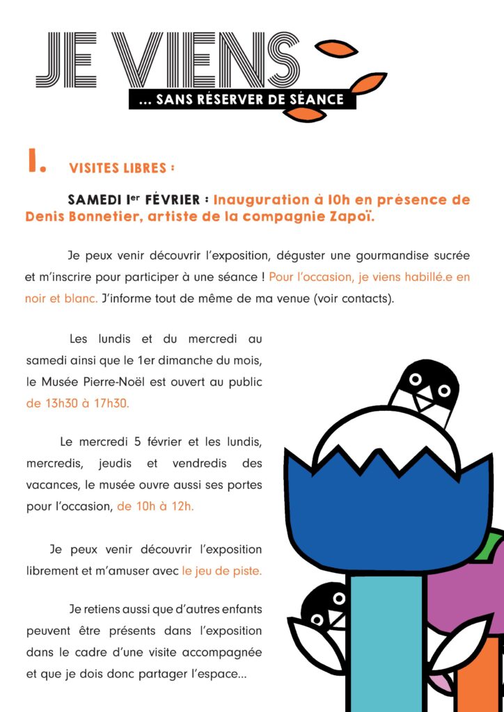 Un chapitre qui s’intitule « Zébrures », avec au programme une exposition tournée vers le jeune public au musée Pierre-Noël, à découvrir au 1er au 22 février. Librement ou lors de visites accompagnées. Du croquis au dessin, des passages piétons aux marinières, du galop des zèbres au Pop Art… l’exposition sera complétée par les spectacles « Zèbres », début avril à La Nef, et sa version raccourcie « ZébrO », adaptée aux bébés dès 6 mois.