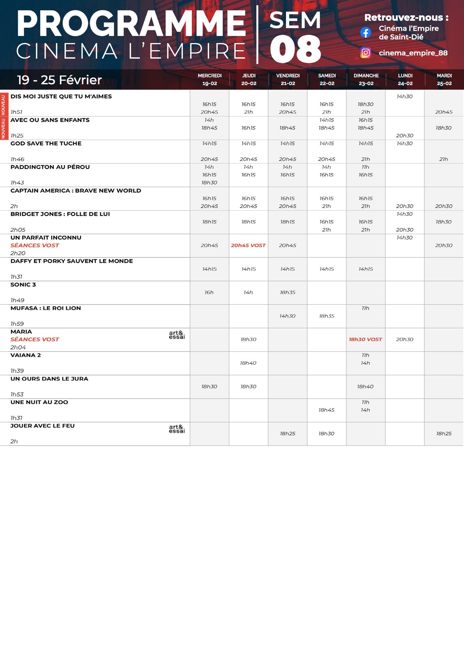 Deprecated: Use of "parent" in callables is deprecated in /project/VIDEV/web/app/plugins/simple-lightbox/includes/class.options.php on line 501 Au cinéma l'Empire du 19 au 25 février - Saint Die Info