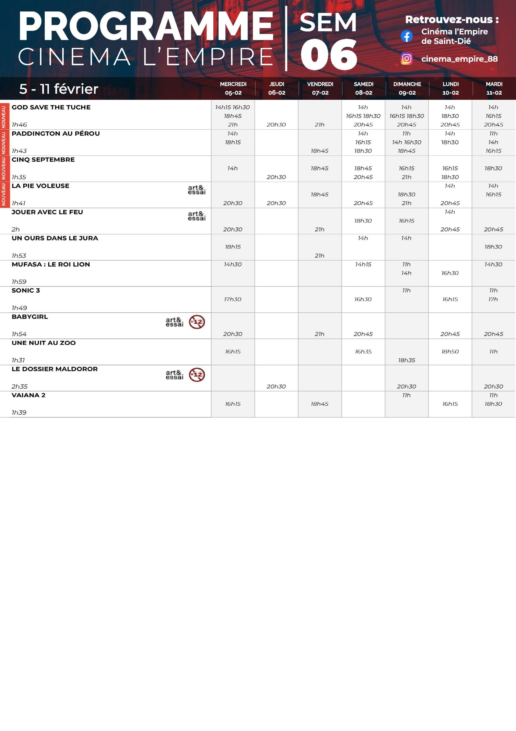 Deprecated: Use of "parent" in callables is deprecated in /project/VIDEV/web/app/plugins/simple-lightbox/includes/class.options.php on line 501 Au cinéma l'Empire du 5 au 11 février - Saint Die Info