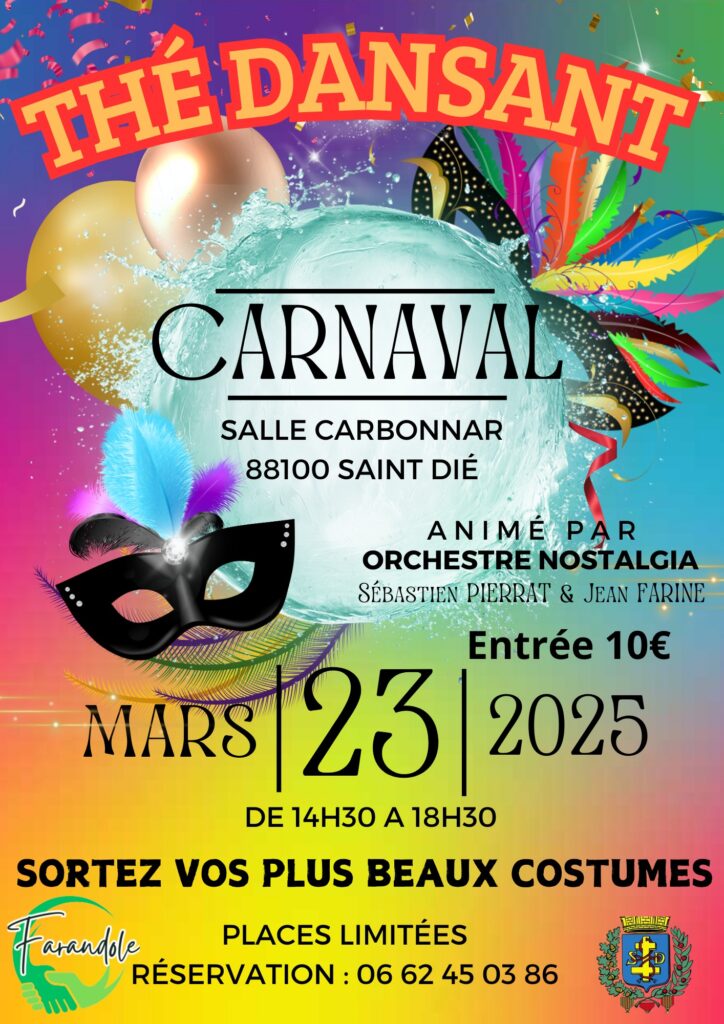 Comme les deux précédents, ce thé dansant sur le thème de carnaval se déroulera à la salle Carbonnar, le dimanche après-midi de 14h30 à 18h30. Il sera animé par Sébastien Pierrat et Jean Farine, de l’orchestre Nostalgia. Les places étant limitées, une réservation est conseillée au 06-62-45-03-86.