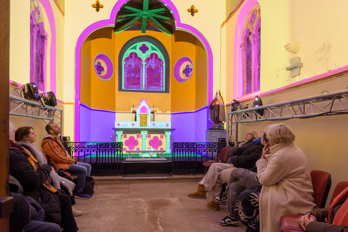 De 17 h à 21 h durant ces 3 jours, le son et lumière « Lumos ! » est projeté en boucle à l’intérieur de l’édifice religieux déodatien, situé au 7, rue Déodat. Ce sont les étudiants des IUT de Saint-Dié-des-Vosges et de Nancy qui ont réalisé ce son et lumière d’une vingtaine de minutes. Un projet sur lequel ils ont planché durant seulement une semaine, mais sur un rythme intensif de 8 heures par jour. L’entrée – et la sortie – pour découvrir « Lumos ! » est libre et ouverte à tous, en sachant toutefois que les contes et légendes locales sont peuplées de sorcières, ogres et créatures effrayantes. Les publics les plus jeunes et sensibles peuvent donc être impressionnés.