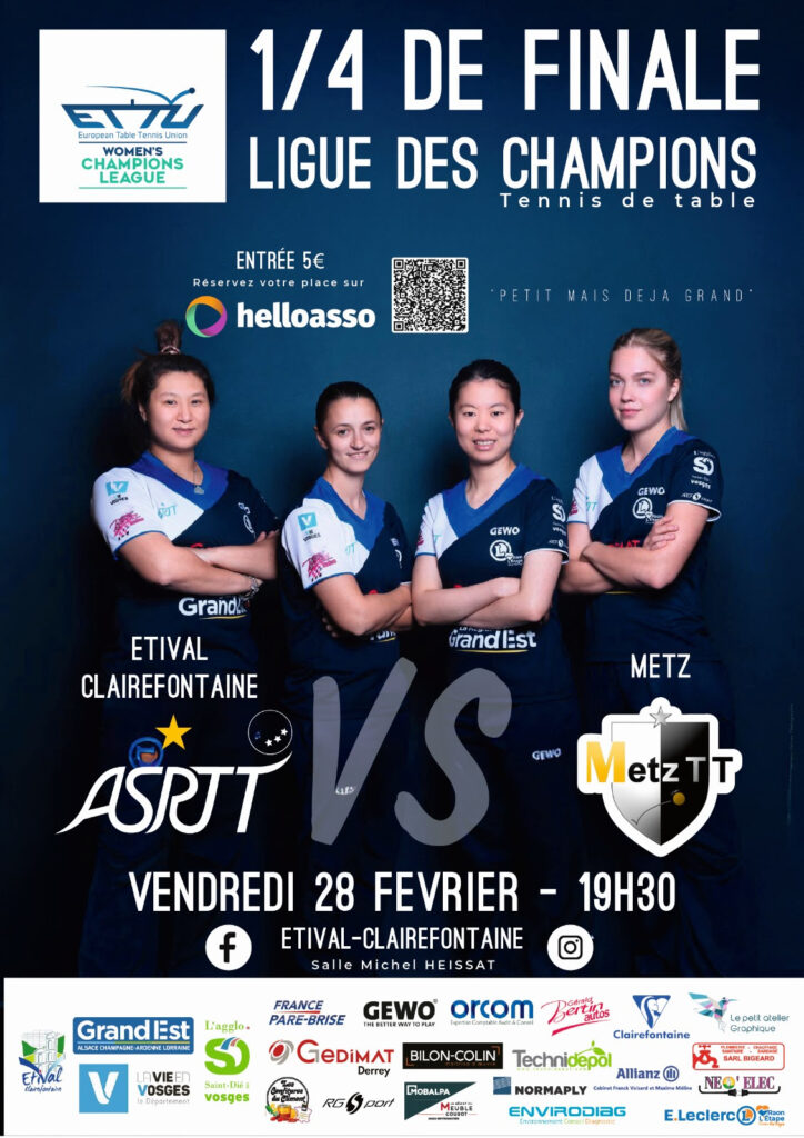 C’est un duel au sommet qui s’annonce dans le chaudron de l’ASRTT à la fin du mois. Car le vendredi 28 février, les pongistes stivaliennes recevront leurs homologues du Metz TT à la salle Michel-Heissat. Coup d’envoi de ce derby lorrain à 19h30.