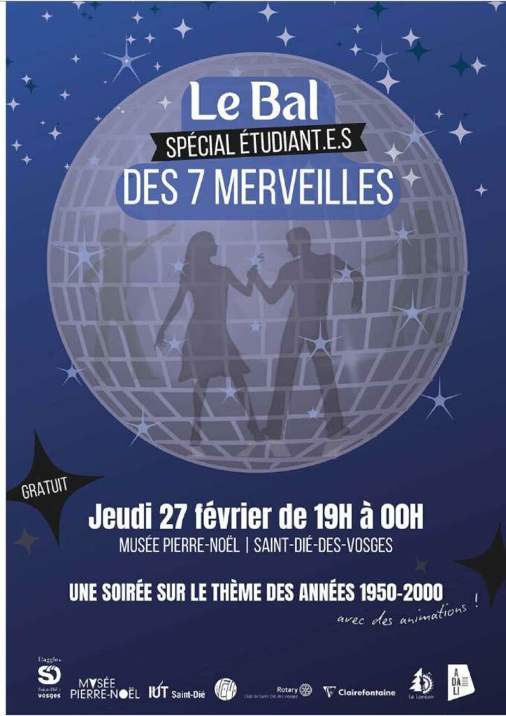 Ce bal étudiant et thématique, qui s’inspire des expositions du musée déodatien, se tiendra le jeudi 27 février de 19h à minuit. L’événement est gratuit et ouvert à tous les étudiants de la ville.