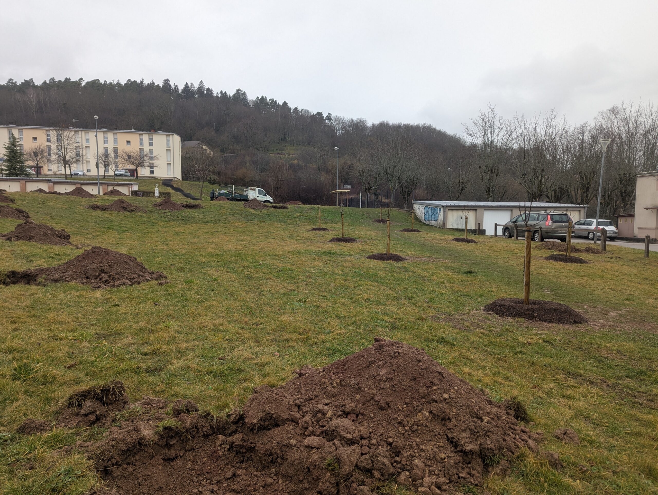 Un déménagement qui s’explique par la future reconstruction de l’EHPAD de Foucharupt à proximité de l’EHPAD Les Charmes. Sur l’emplacement initial du verger Fernand-Lahaye, mais également de l’autre côté de la route, là où se trouvaient il y a encore quelques semaines les habitations de la rue Jean-Zay.